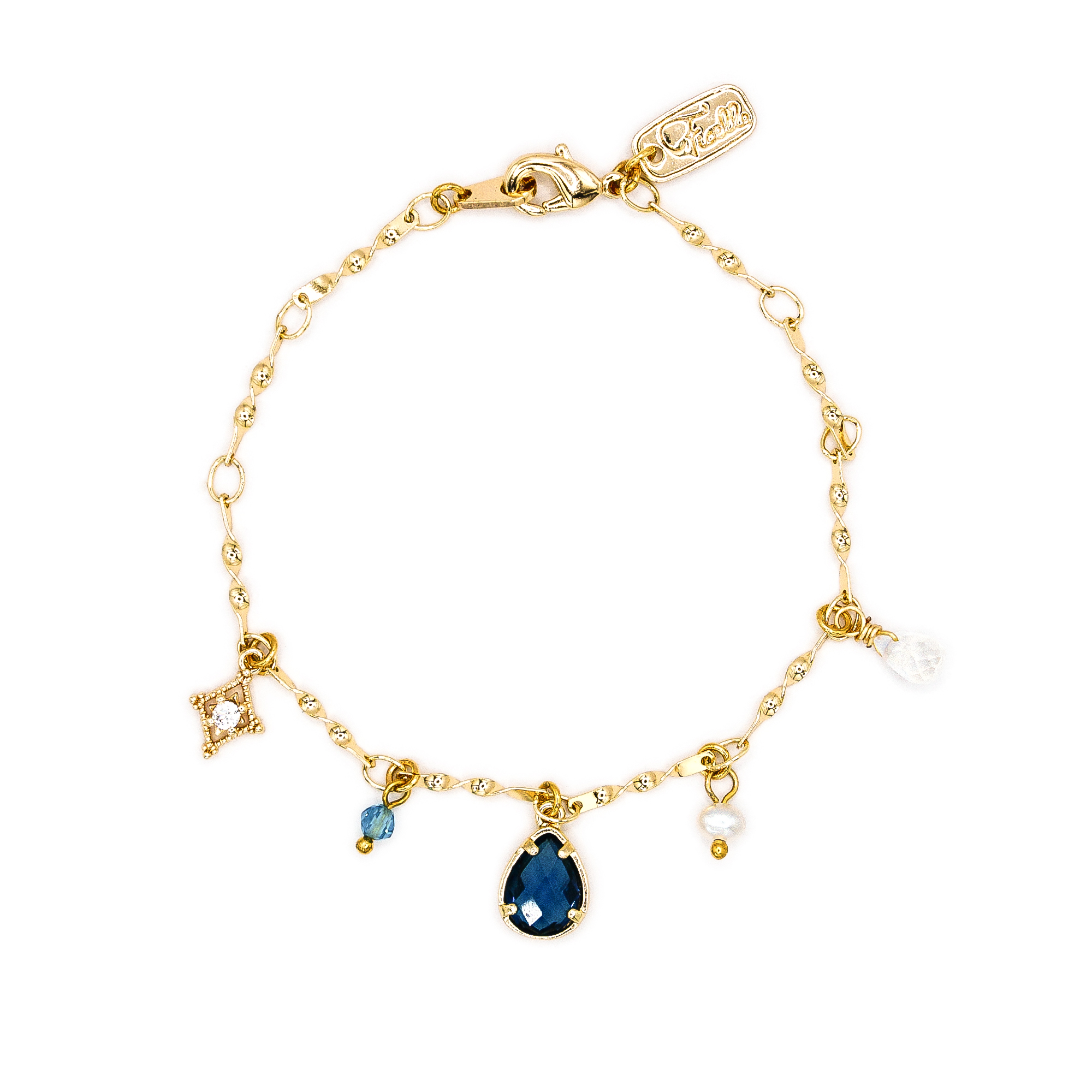 托帕石、藍鋯石、月光石、淡水珍珠、黃銅鍍18K金