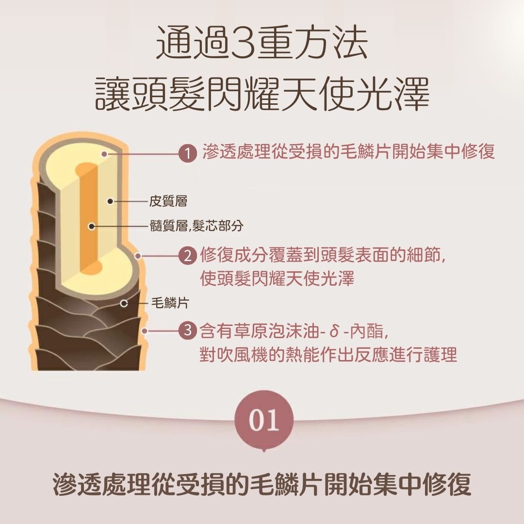 俗稱〈高溫防護盾〉有效隔離熱損傷,不見乾枯毛躁