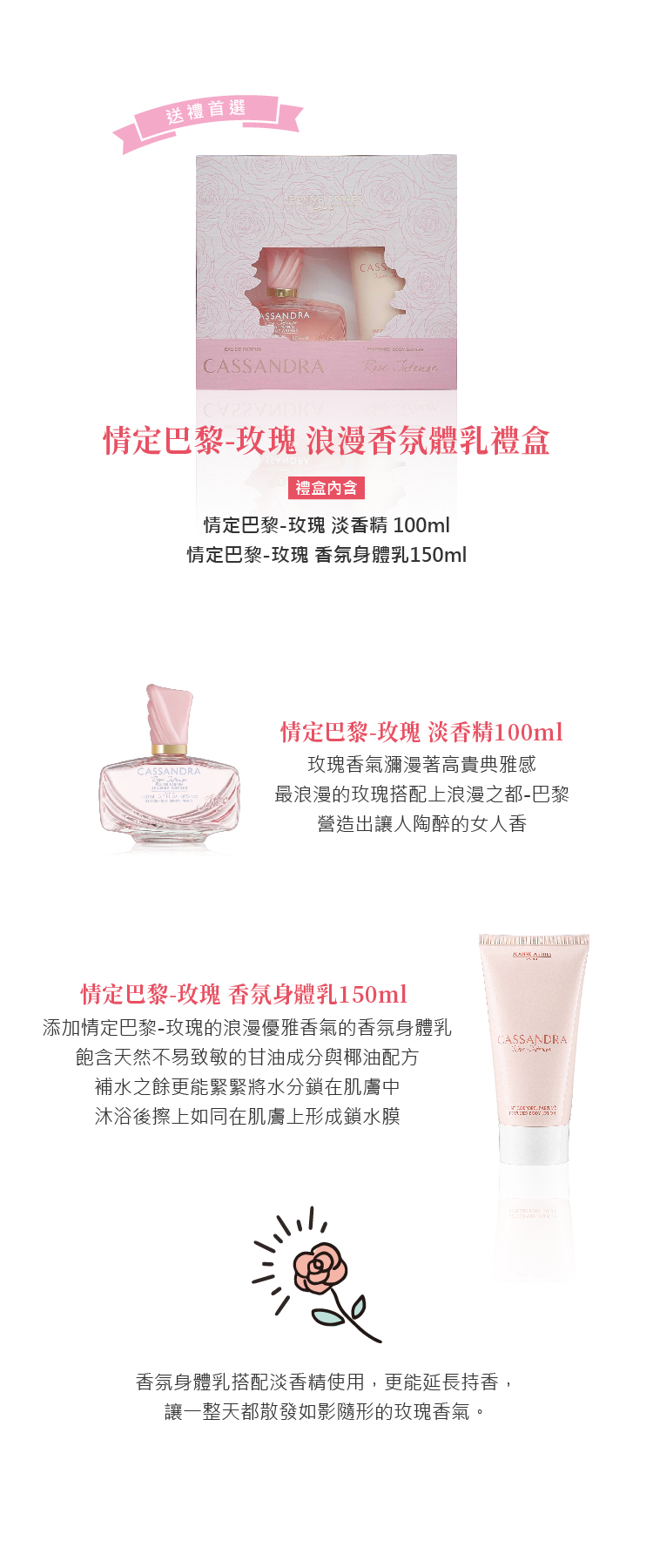 ◆商品名稱:Jeanne Arthes 情定巴黎-玫瑰 浪漫香氛體乳禮盒 禮盒內容情定巴黎 玫瑰 淡香精100ml情定巴黎 玫瑰 香氛身體乳150ml