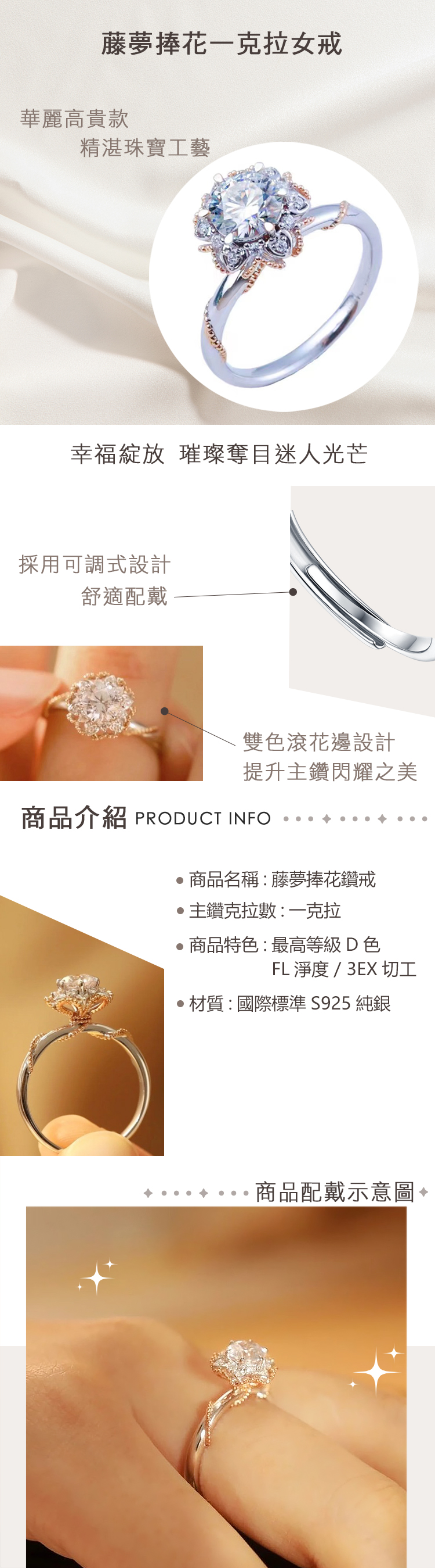名稱:藤夢捧花莫桑鑽 1克拉戒指