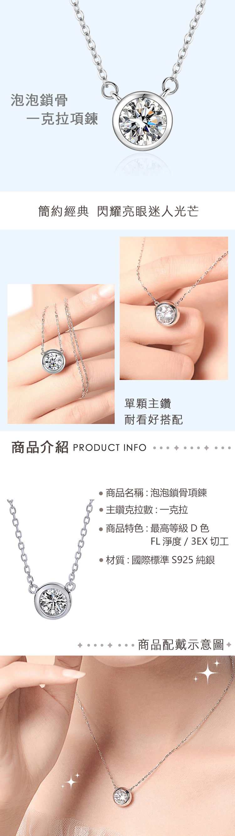 名稱:《泡泡鎖骨》莫桑鑽一克拉項鍊