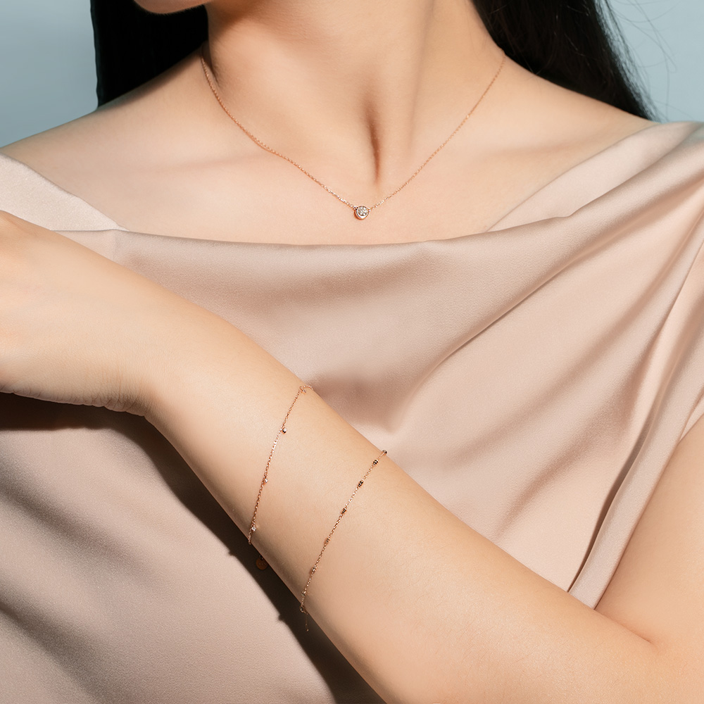 ◆鑽石重量:約0.03克拉◆鑽石顏色:E~F◆鑽石淨度:VS1~VS2◆鍊子長度:約15cm+3cm延長鏈