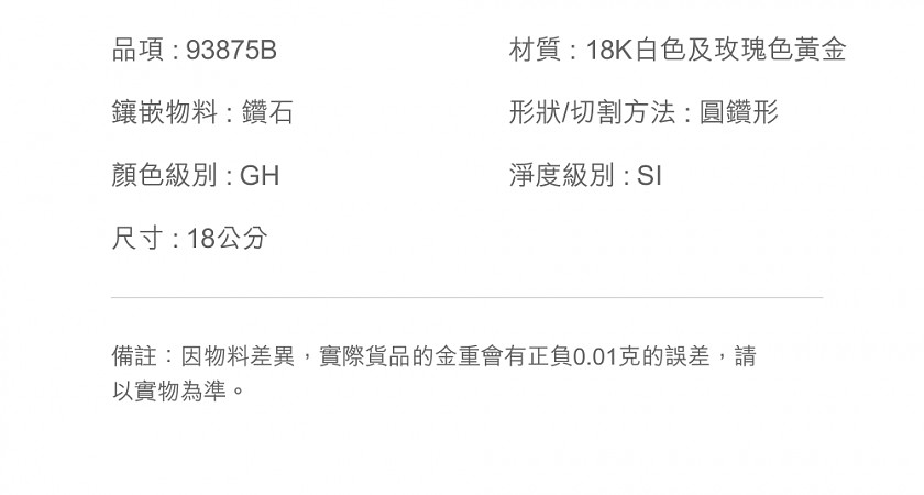 ‧款號:93875B‧材質:18K白紅分色黃金‧鑲嵌物料:鑽石