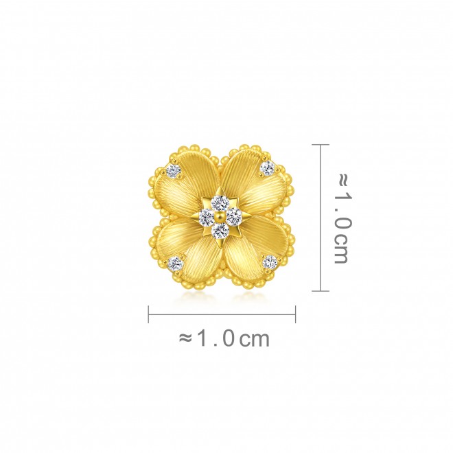 足金鑽石串珠靈感源於幸運標誌「四葉草」,採用卓越硬黃金電鑄工藝及精緻勾絲工藝,傾注時間以人手打造黃金細緻質感。花蕊及花瓣綴有美鑽映襯,閃爍耀眼,結合圓珠鑲邊細節,質感高貴動人,寄願四葉草的幸福花語,為生活帶來種種美好祝福。