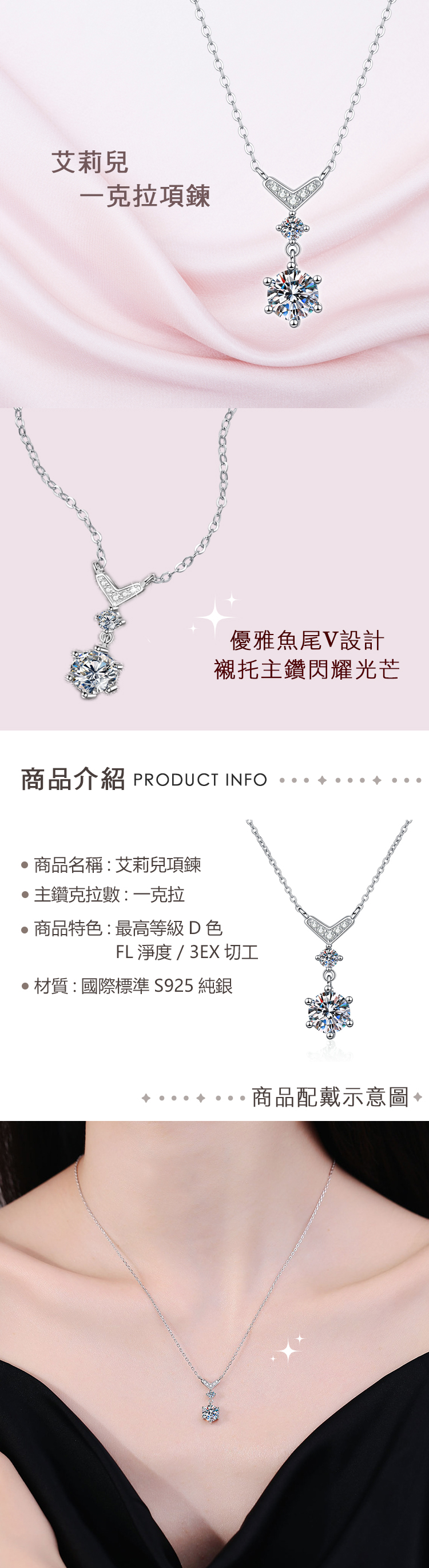 | 商品內容 |名稱:莫桑鑽《艾莉兒》1克拉項鍊