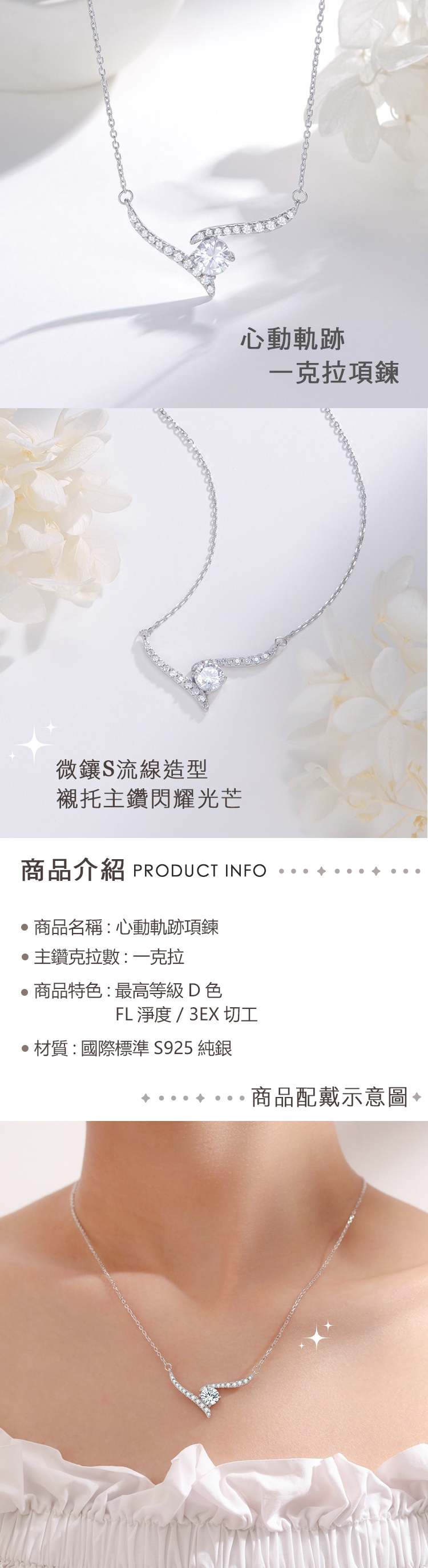 | 商品內容 |名稱:莫桑鑽《心動軌跡》1克拉項鍊