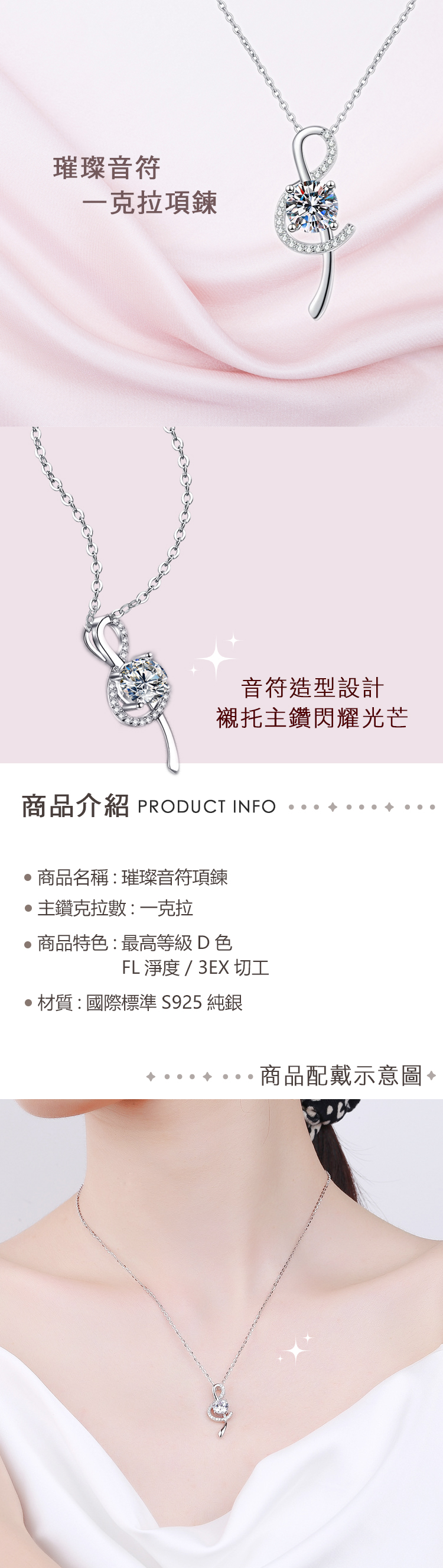 | 商品內容 |名稱:莫桑鑽《璀璨音符》1克拉項鍊