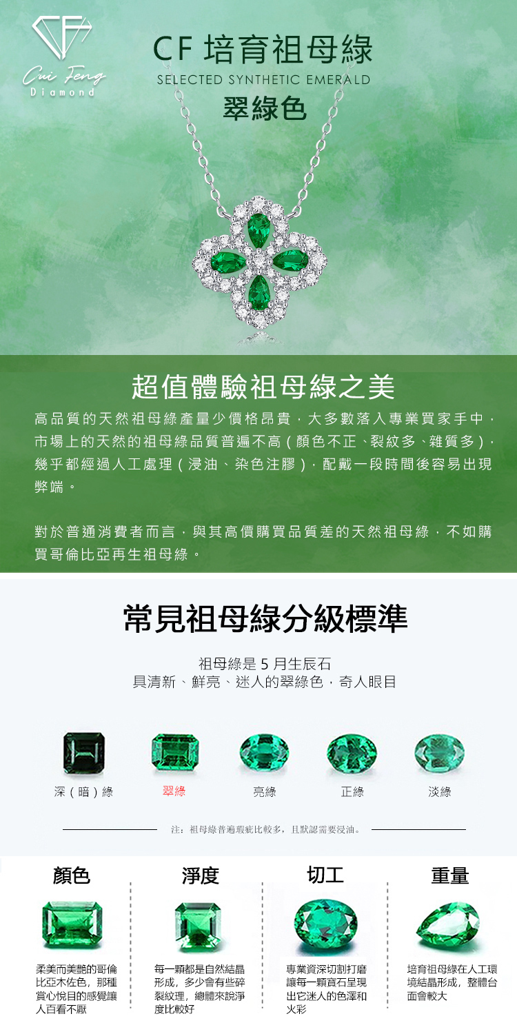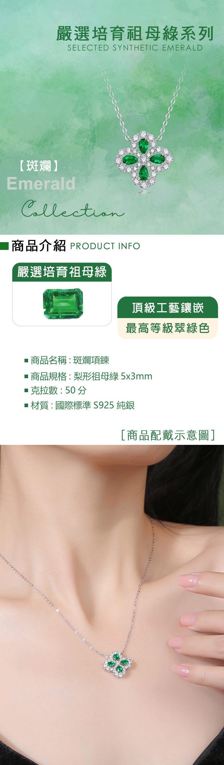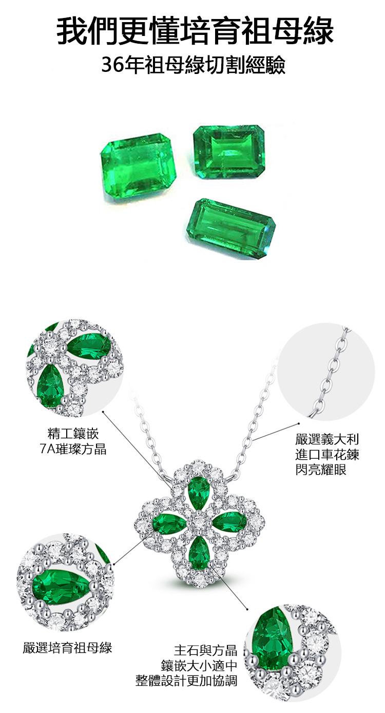 材質:培育祖母綠 / 925純銀 / 配鑽:7A璀璨方晶