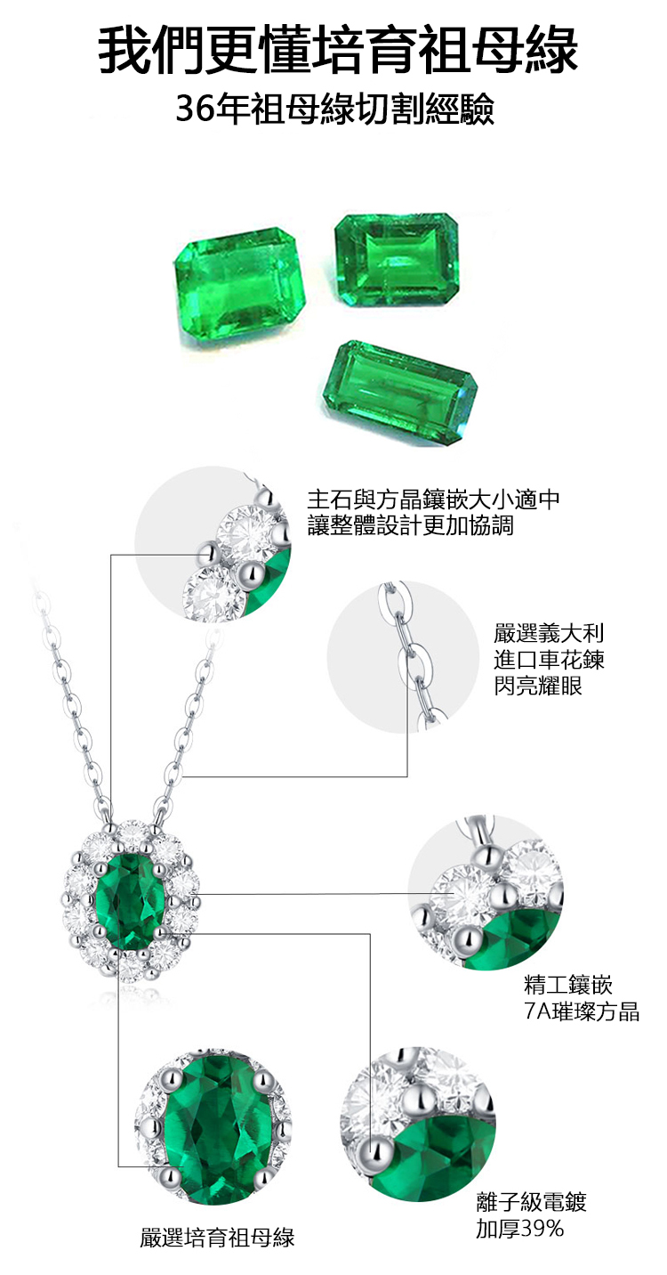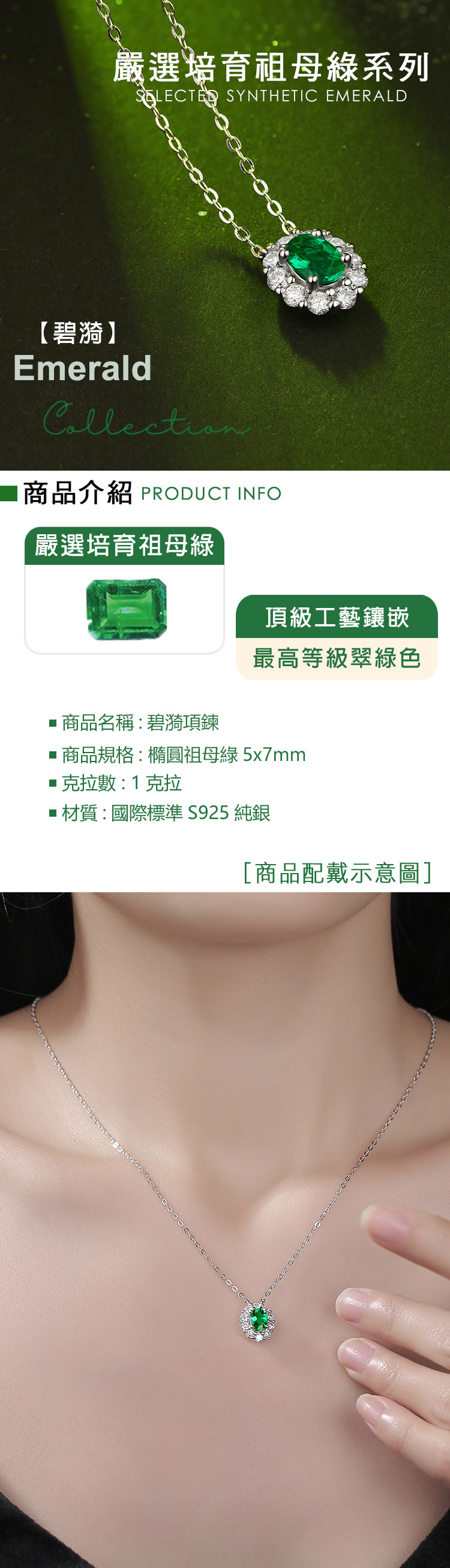 材質:培育祖母綠 / 925純銀 / 配鑽:7A璀璨方晶