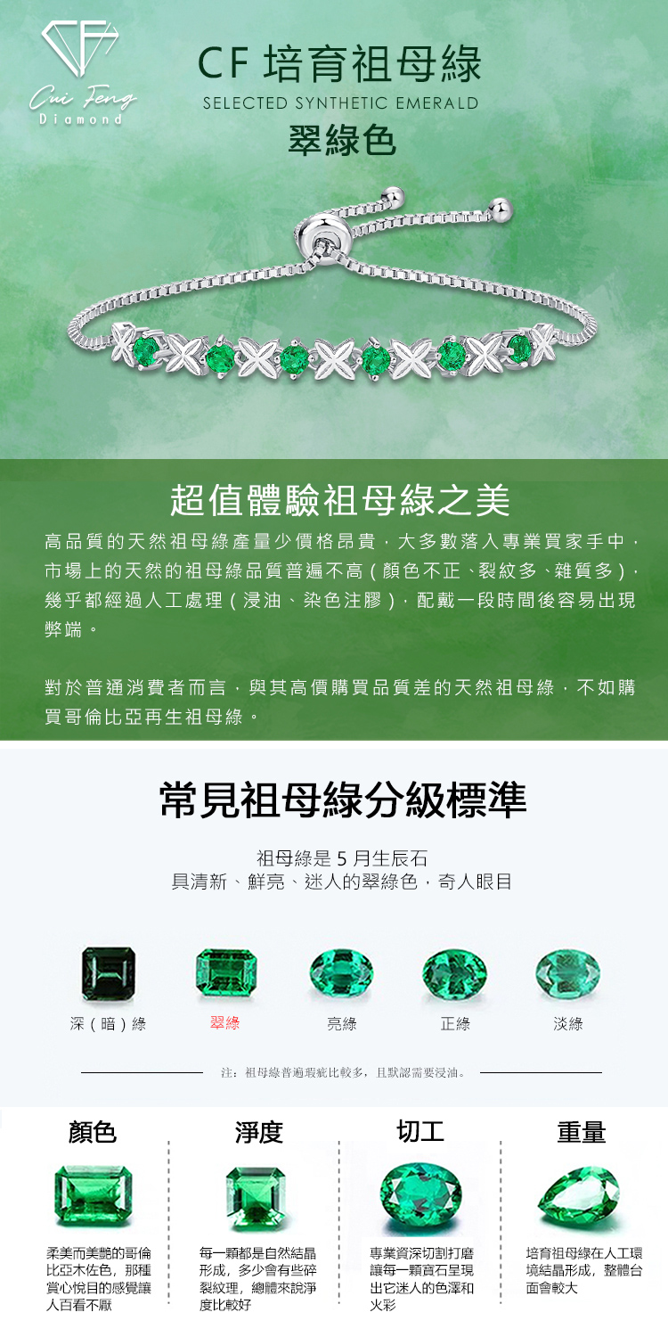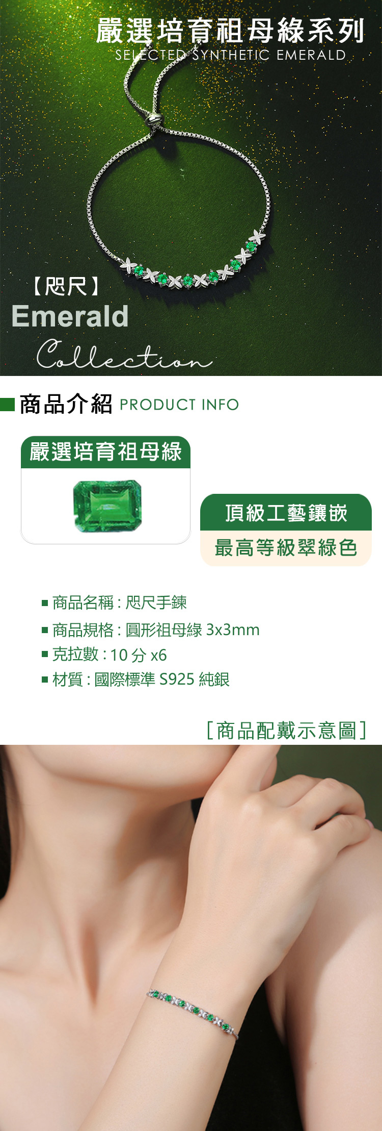 名稱:《咫尺》培育祖母綠10分6顆手鍊
