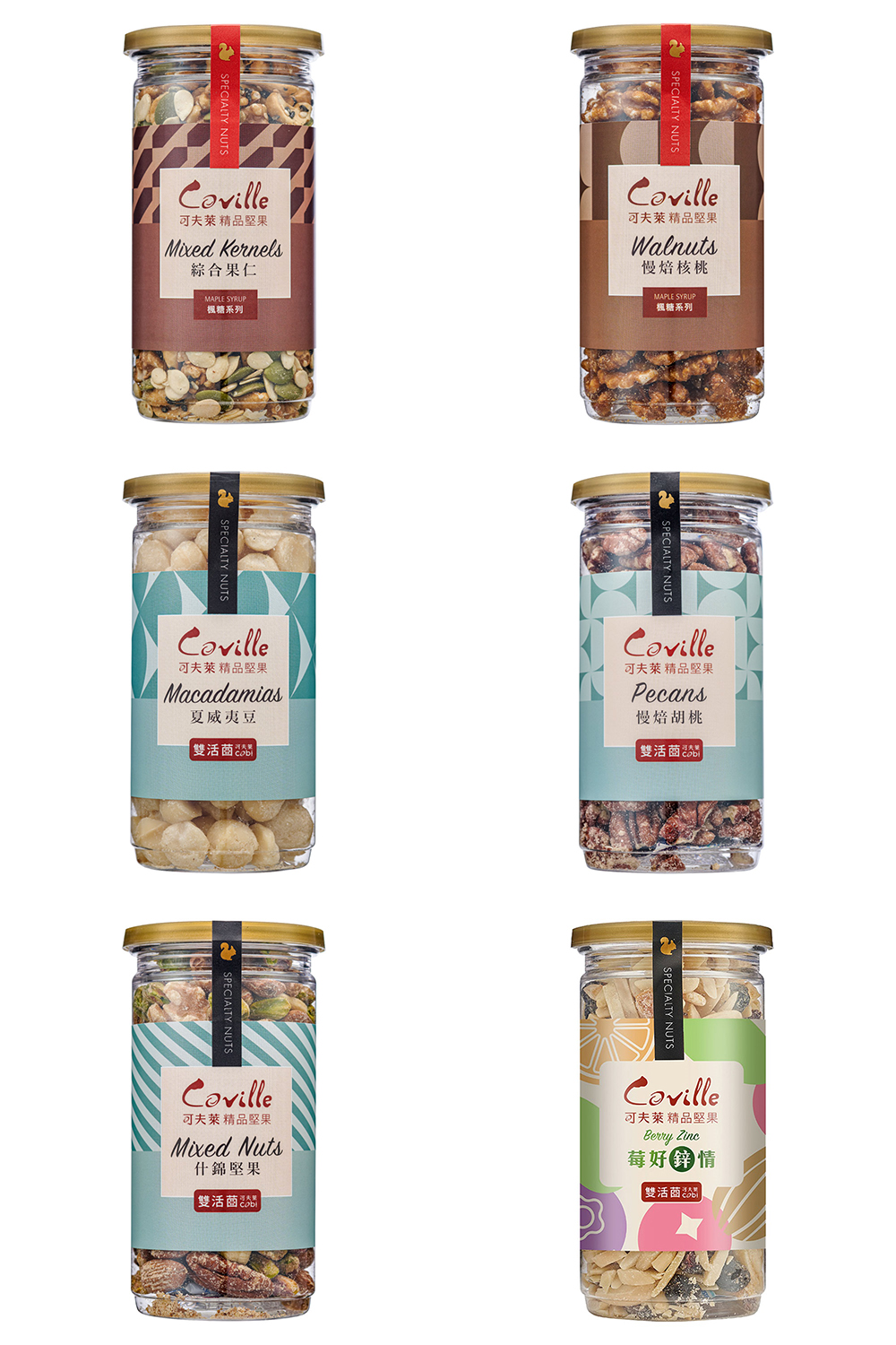 雙活菌什錦堅果200gx1、雙活菌慢焙胡桃160gx1、雙活菌夏威夷豆200gx1、莓好心情190gx1、楓糖蜜核桃150gx1、楓糖綜合果仁200gx1丨附提袋