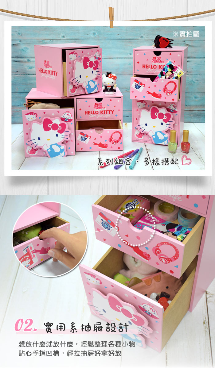 ●多抽屜收納盒,開闔便利●多款空間設計,隨心放置物品●限量45周年Kitty 超卡哇依~