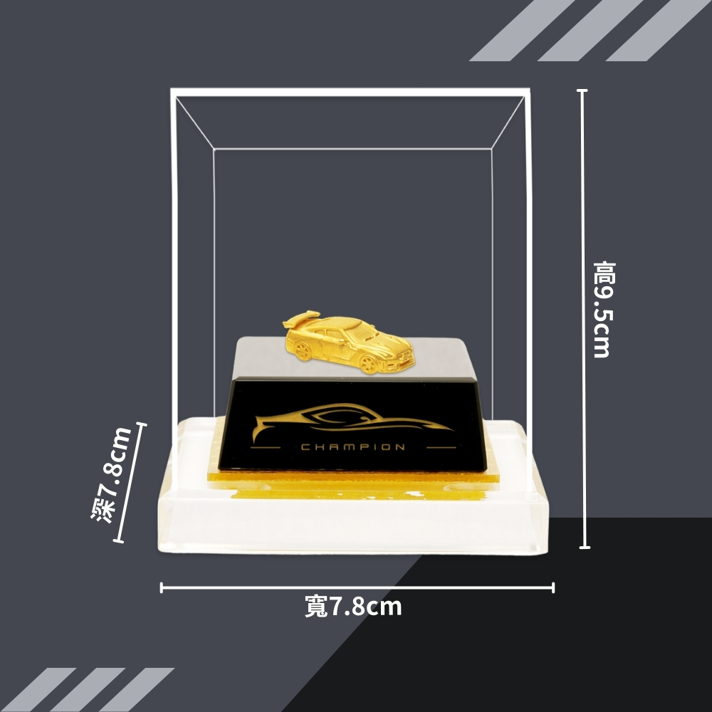 名稱:純黃金擺件 豪華超跑俱樂部-東瀛戰神 (招財)材質:純金金重:黃金約重1.41錢±0.05尺寸:如圖示-寬7.8 x深7.8 x高9.5cm(含底座及壓克力框)配備:包裝盒x1、保證卡x1、手提袋x1