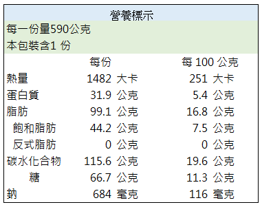 【濃情巧克力提拉米蘇(不含酒精.蛋奶素)產品成分及營養標示】