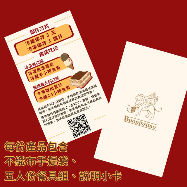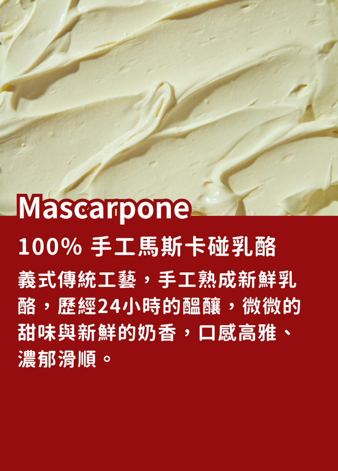 成分: 手工熟成馬斯卡碰乳酪、咖啡萃取液(水、咖啡豆)、手指餅乾、殺菌雞蛋液、糖、 100%比利時可可粉、100%可可豆碎粒重量590±10公克<本產品含牛奶、蛋、麩質的穀類等過敏原,食用後可能導致過敏反應>保存期限:-18度冷凍3個月 保存方法:退冰需冷藏,3天內食用完畢