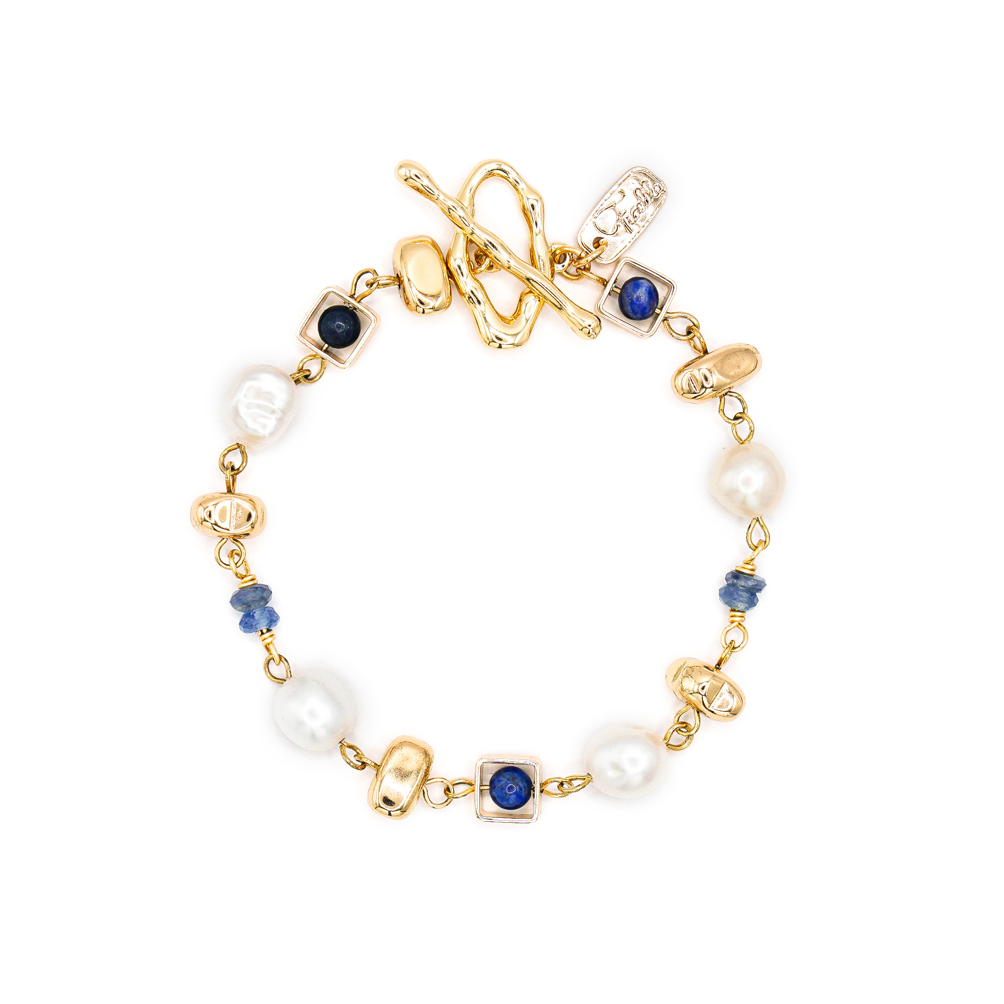 青金石、巴洛克珍珠、藍晶石、黃銅鍍18K金