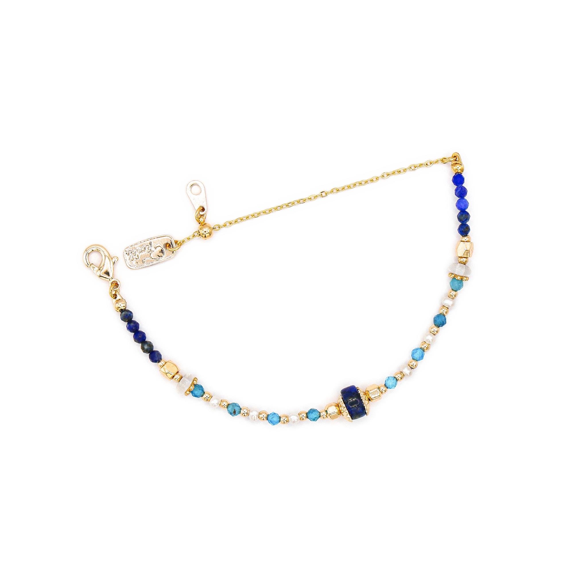 – 商品材質 Product Materials –青金石、藍透輝石、白水晶、淡水珍珠、黃銅鍍18K金– 寶石寓意 Gemstone Fortunes –青金石 Lazurite:具有使人冷靜的能量,進而改善洞察力與溝通表達的能力。
