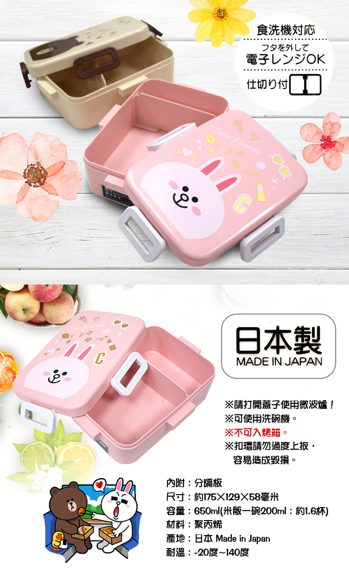 ●內含左右分隔板(可自行分隔)●日本製 境內版●可耐溫140度●可微波 不可進烤箱●4點扣點 不易外漏