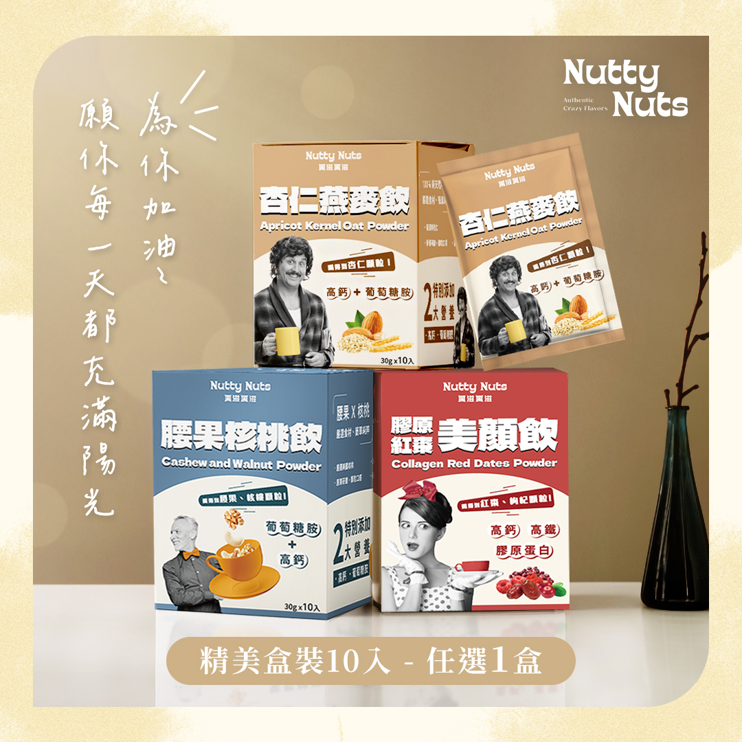 杏仁燕麥飲、腰果核桃飲、膠原紅棗美顏飲|任選1盒 (10包/盒)