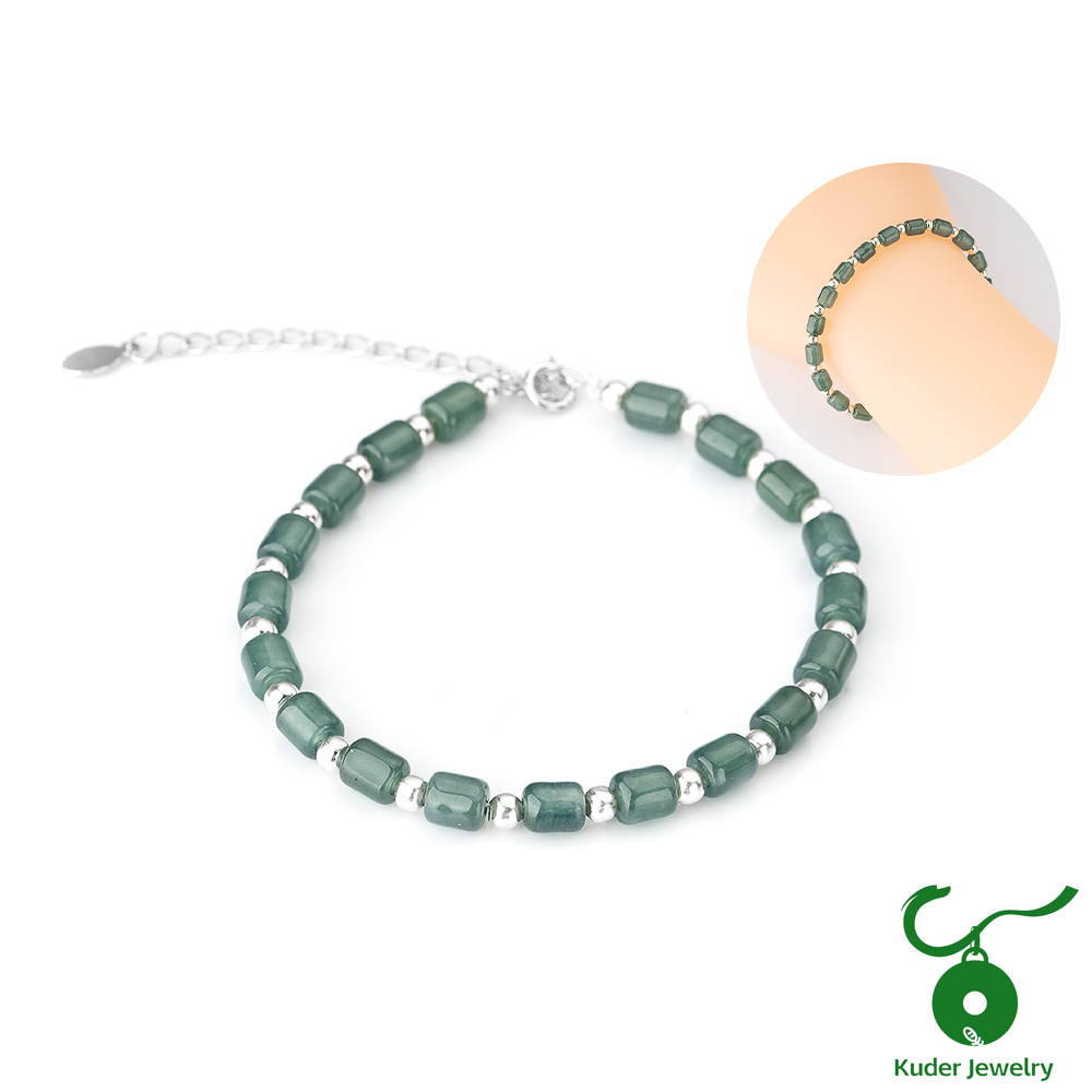 [快速出貨]【Kuder Jewelry】天然A貨冰種藍水翡翠萬事享通手鍊附珠寶鑑定書
