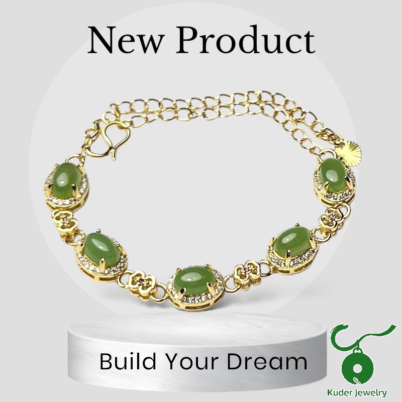 商品內容名稱: 天然和田碧玉好運連連手鍊附珠寶鑑定書貨號: KD024-018主石尺寸: 約6.8*4.8mm *5 pcs, 手鏈面長80mm手鏈總長度:21cm, 手圍可以調整, 適用15圍至21圍,任何身材都能珮戴.鍊身: 合金鍍金 配件部份:首飾盒,提袋.珠寶鑑定書.