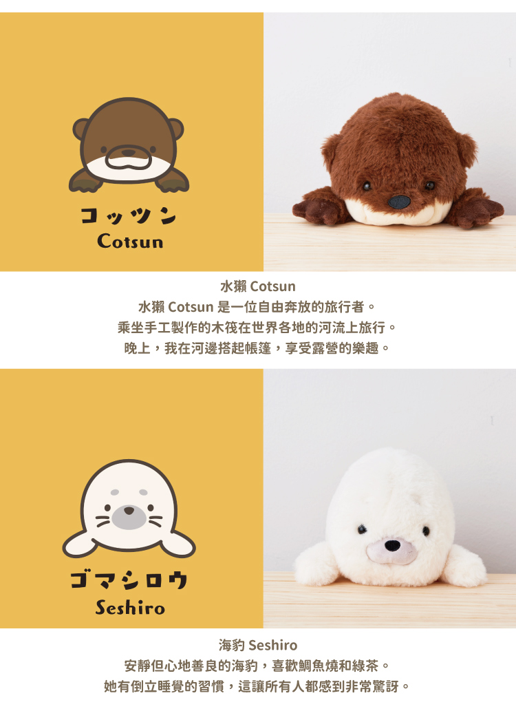水獺:調皮的小水獺,嘴巴帶有淺淺的微笑,好像在邀請你去溪邊玩耍一樣