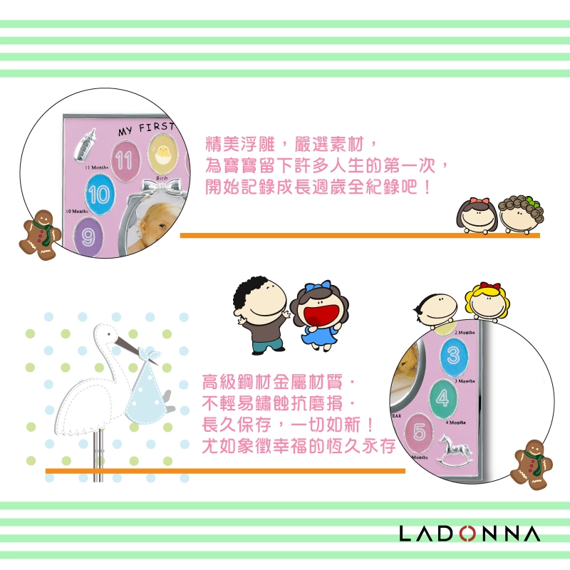 名稱:【日本 LADONNA】 Baby週歲成長記錄相框/粉紅 MB21-130-PK