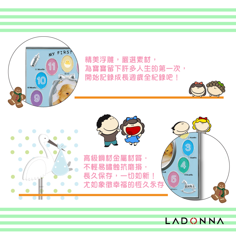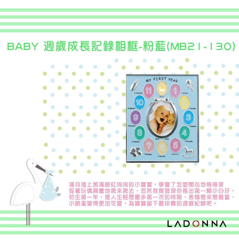 名稱:【日本 LADONNA】Baby週歲成長記錄相框/藍 MB21-130-BL