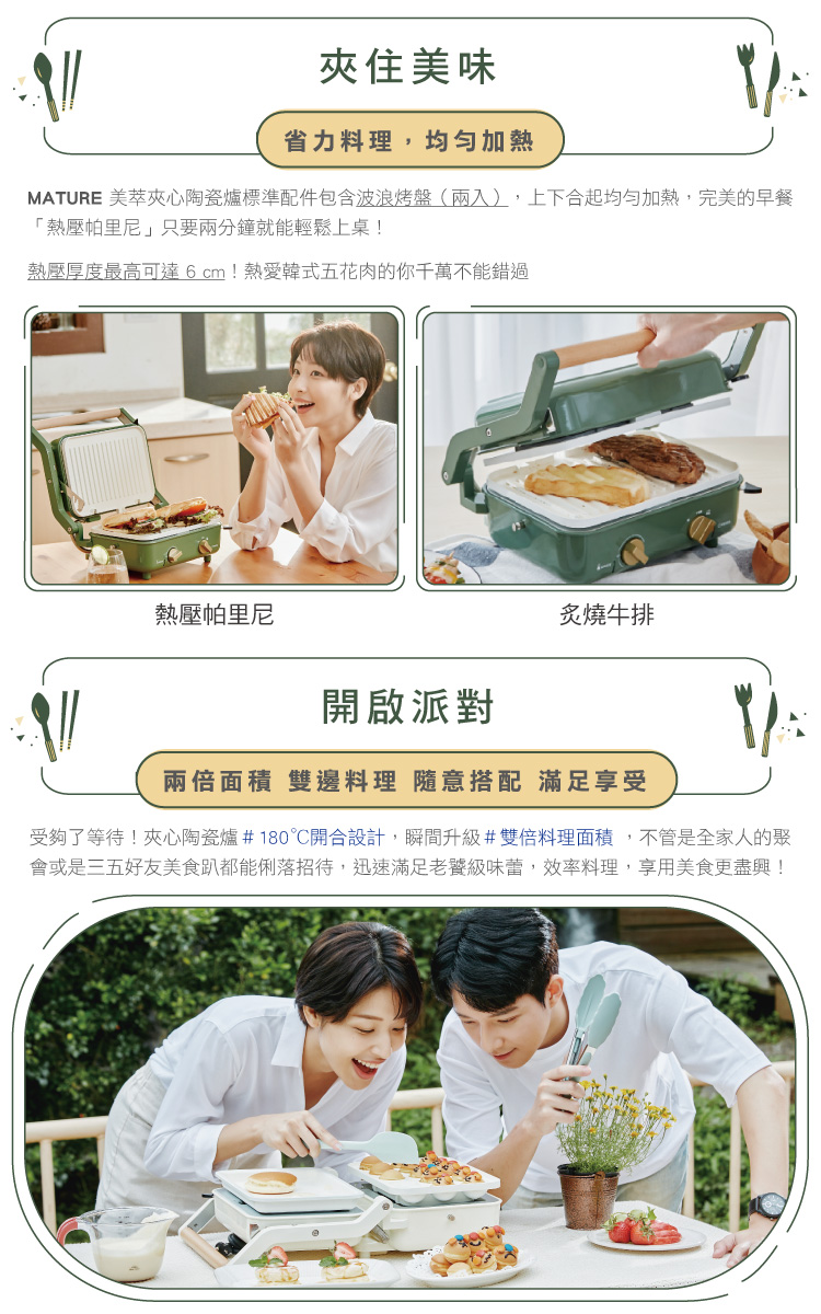 ✦ 多種料理一機搞定,熱壓、火烤兩吃