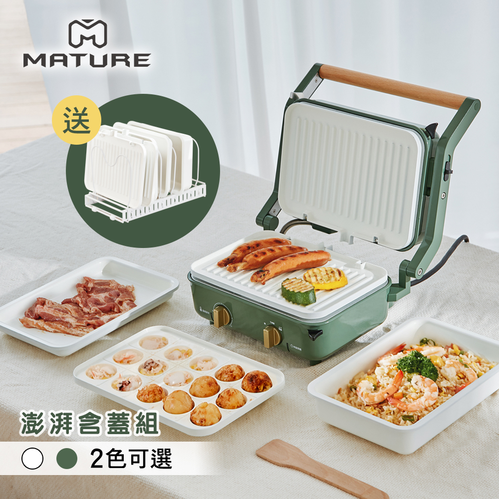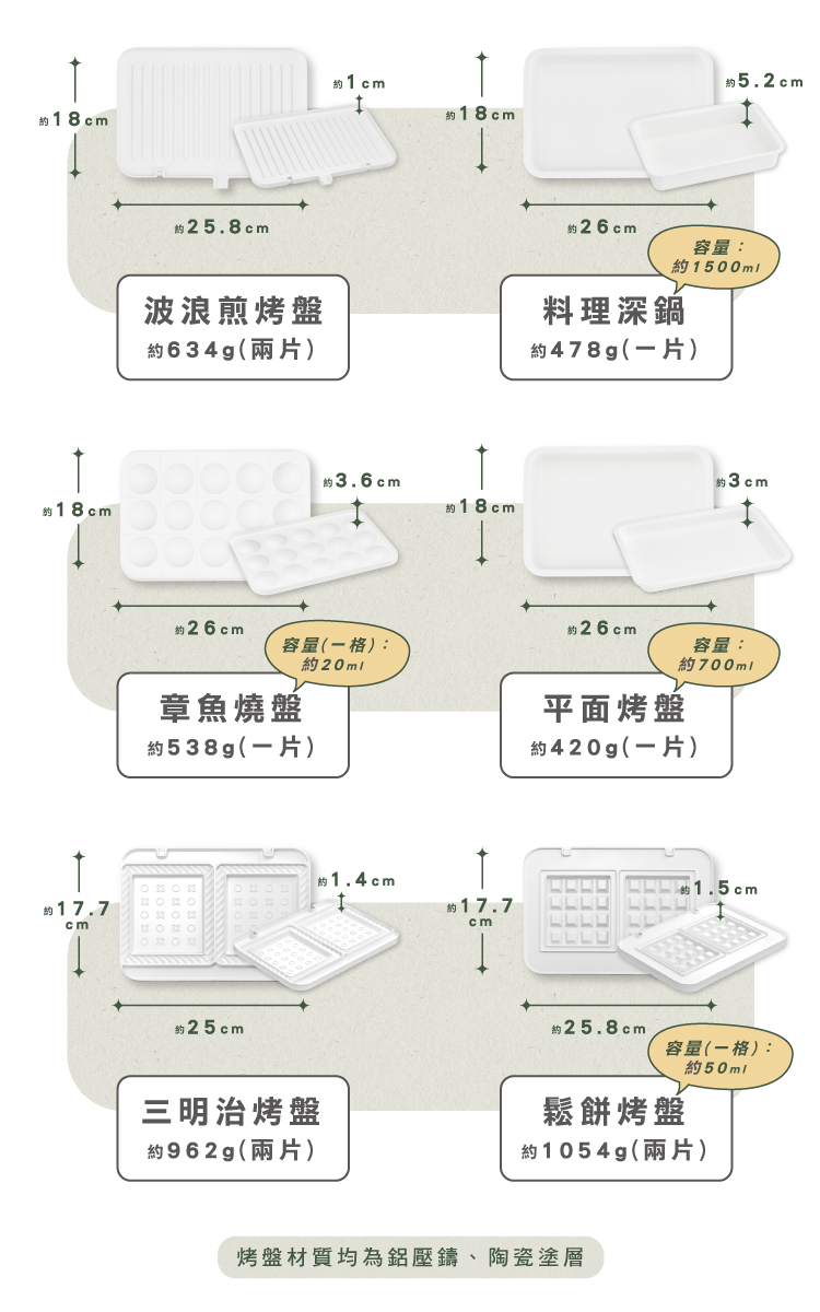 ✨內容物:夾心陶瓷爐&深鍋&平盤&章魚燒盤&玻璃蓋&收納架