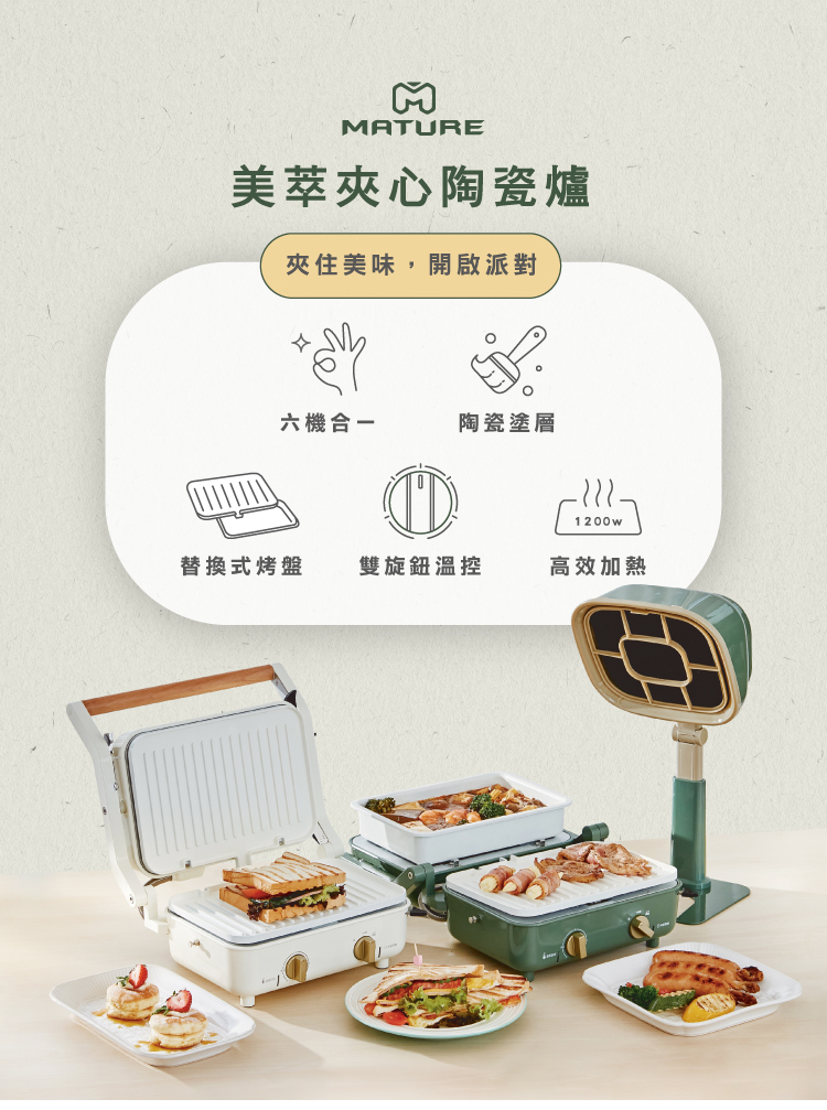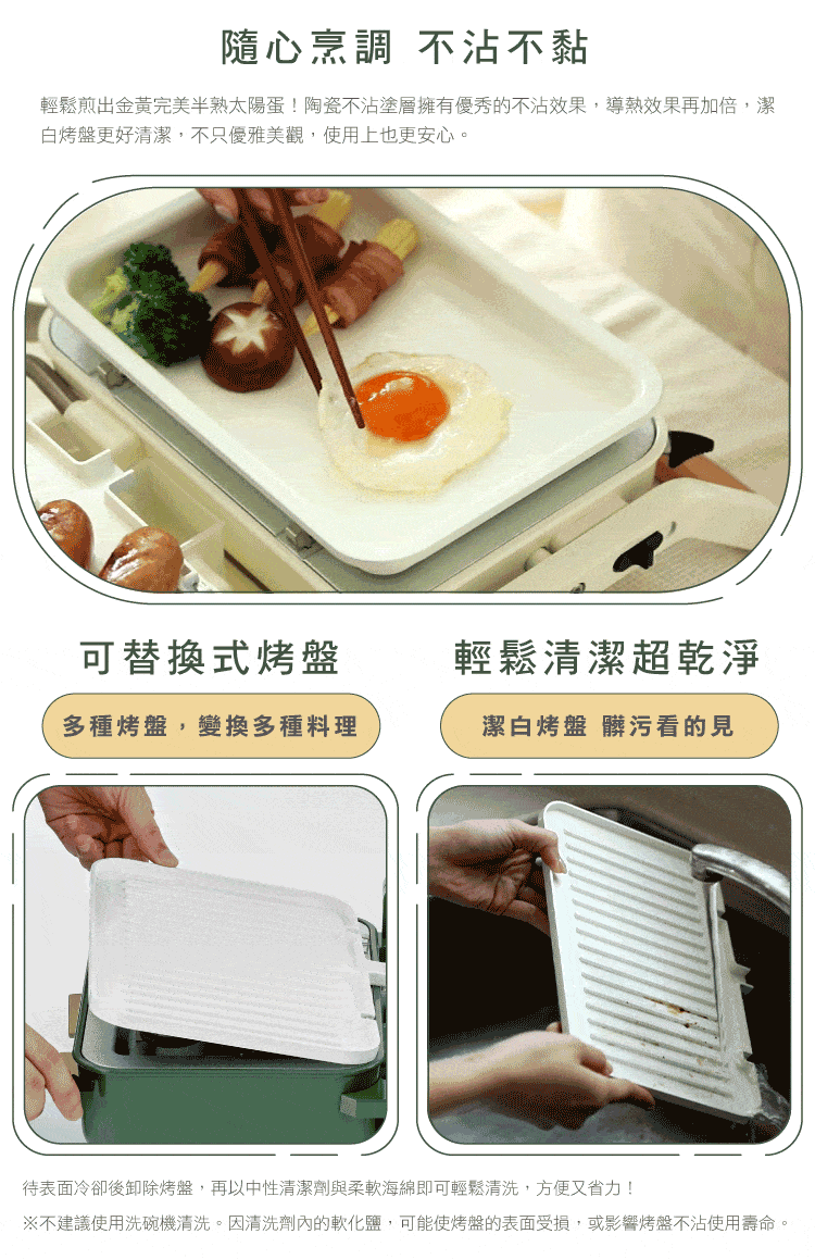 ✦ 六機合一 雙旋鈕溫控 可替換烤盤