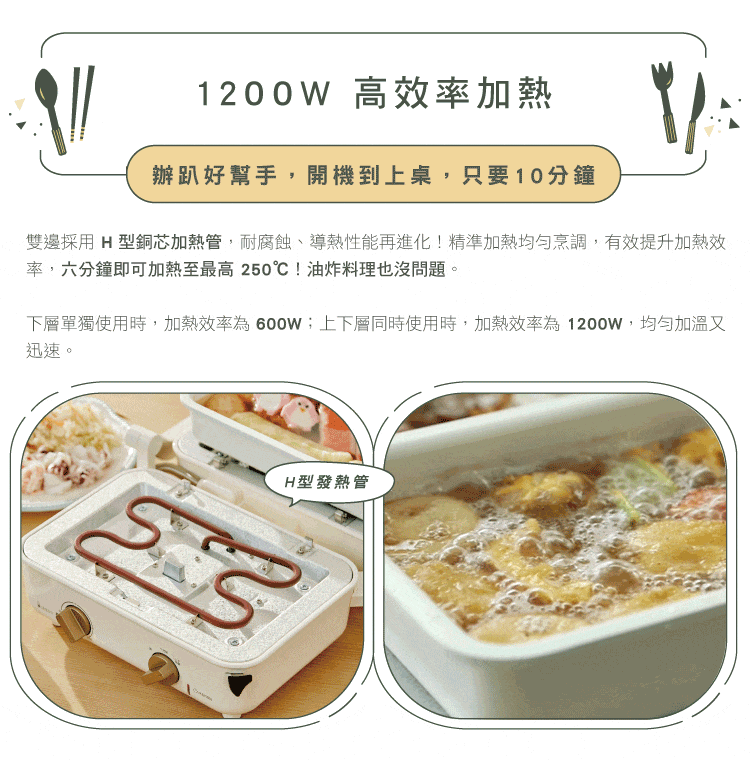 ✦ 1200W加熱火力,均勻快速料理