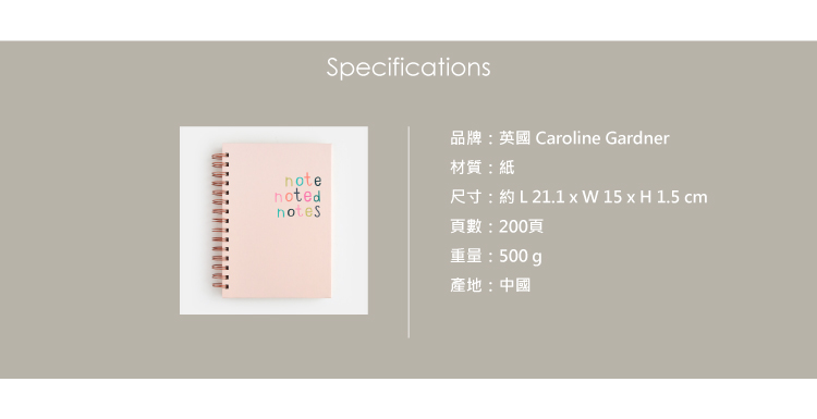 品牌:英國 Caroline Gardner材質:紙尺寸:約 L 21.1 x W 15 x H 1.5 cm頁數:200頁重量:500 g產地:中國