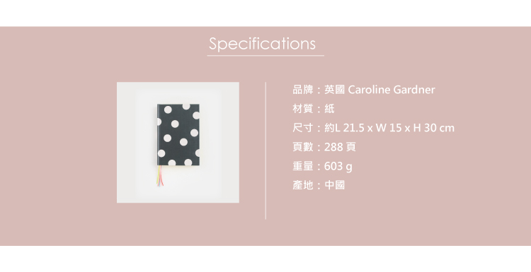 品牌:英國 Caroline Gardner材質:紙尺寸:約L 21.5 x W 15 x H 30 cm頁數:288 頁重量:603 g產地:中國