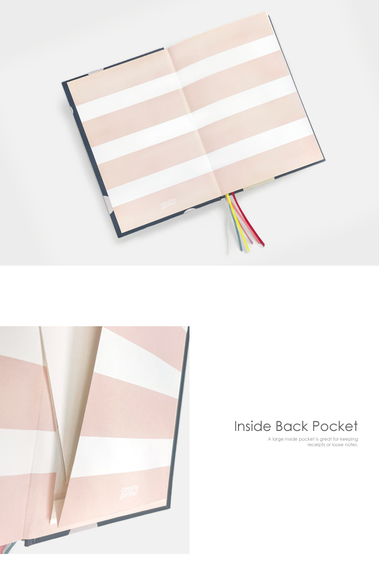 將Caroline Gardner經典配色及印花應用在筆記本中,內頁為橫條紋內頁,也能延伸變化成格紋線條使用,外層是耐用堅固的精裝本,自填式萬用筆記本,隨時都可以開始記事,兼具美感與實用性,帶給您清新的書寫感受,可愛的封面配色加上精緻質感,無論在哪個空間使用,都能成為實用又時尚的迷人配件。