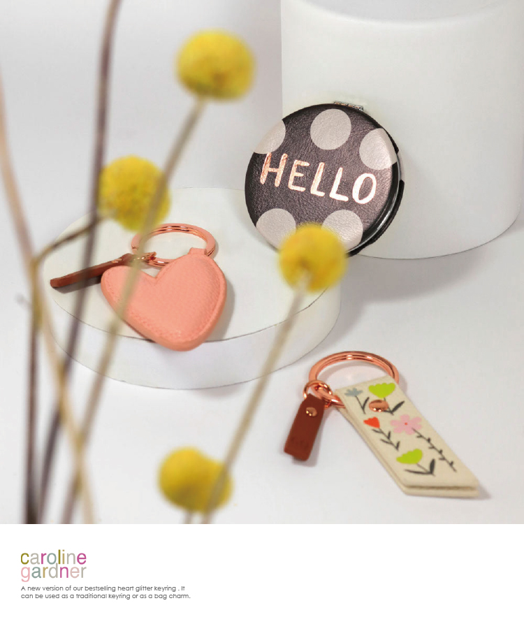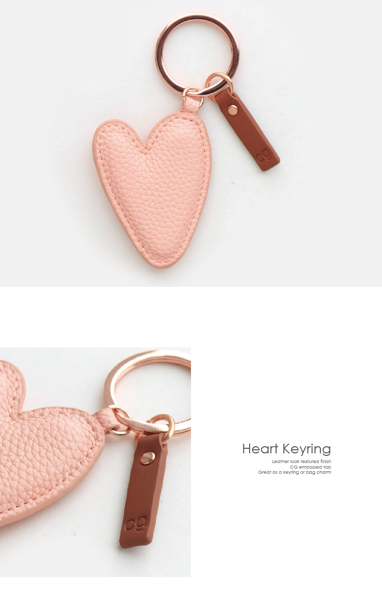 愛心鑰匙圈使用Caroline Gardner款引人注目的桃粉色系品牌專屬真皮小皮標加上質感金屬扣無論是當作鑰匙圈或是包包上亮眼的裝飾都能成為日常不可或缺又時尚滿點的迷人配件推薦給充滿少女心的你。