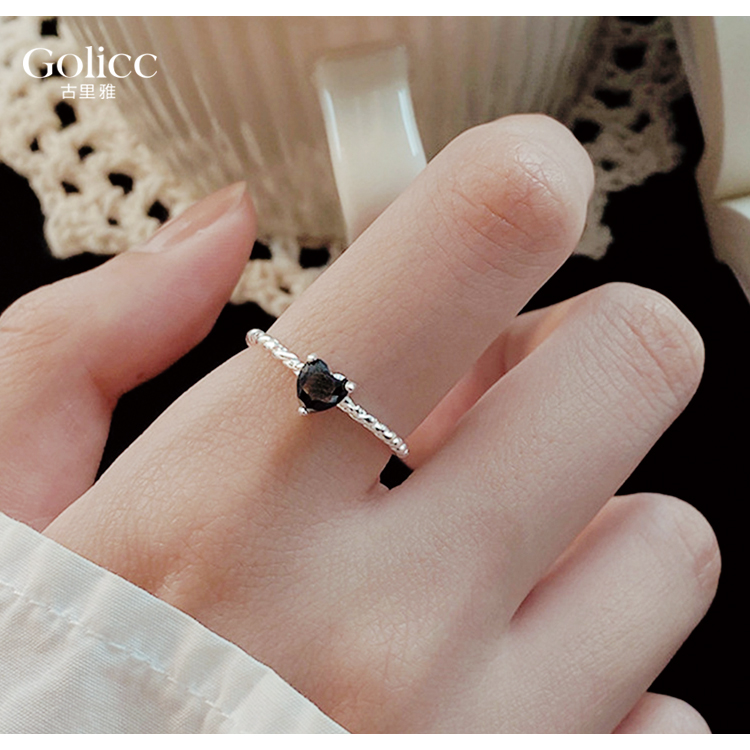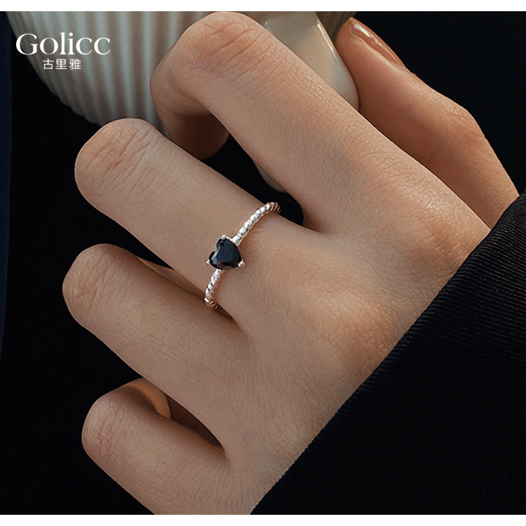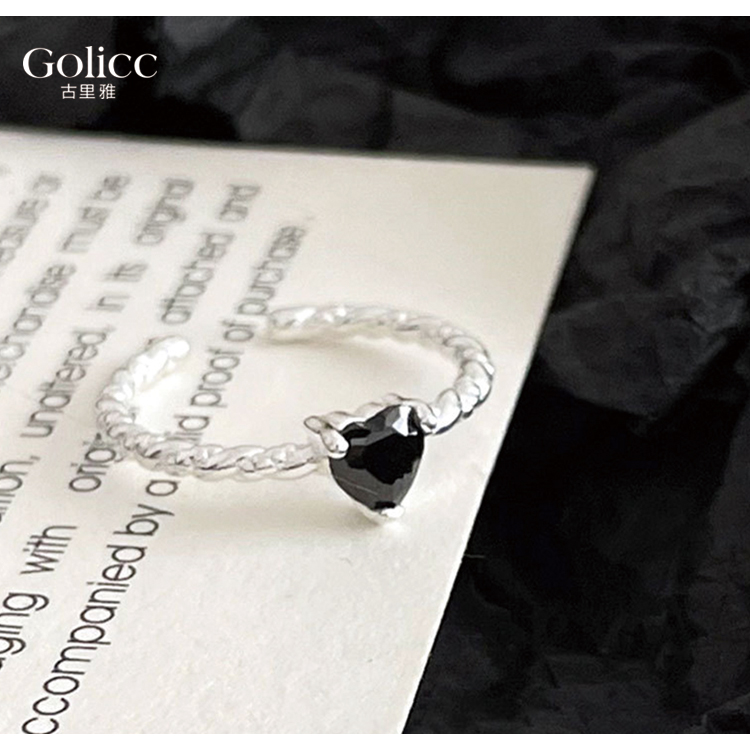 【Golicc】戒指 黑色鋯石愛心麻花戒指 | NearMe | 線上送禮平台『獨家支援 收禮者改選禮物』