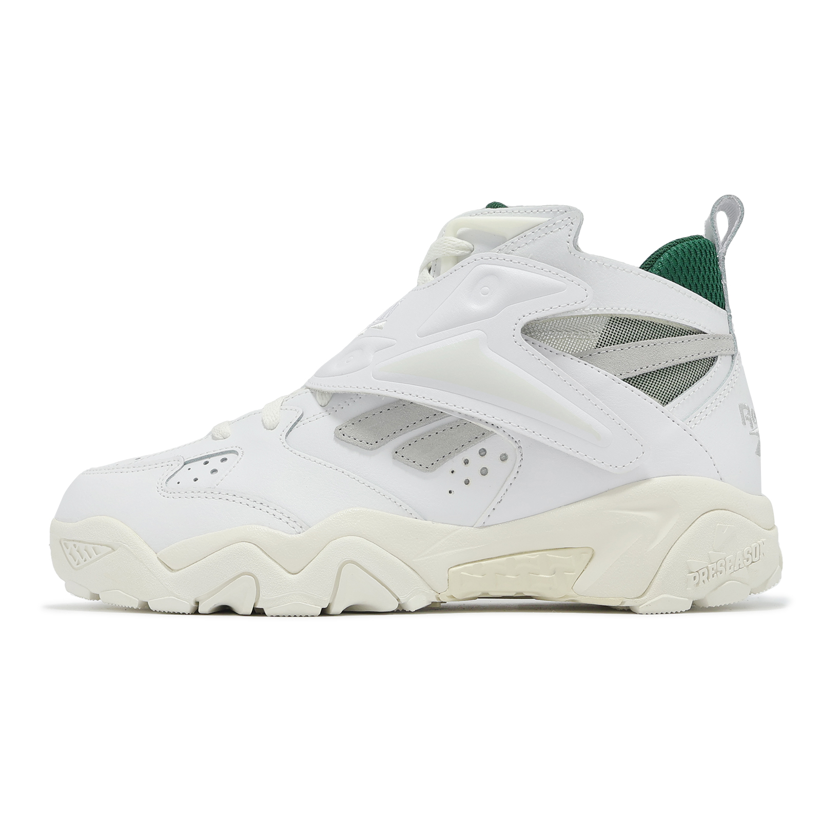 品牌: REEBOK型號: 100202793品名: Preseason 94版型: 腳寬者建議大半號* 經典 90 年代籃球鞋款,結合棒球與橄欖球元素為基礎,搭配皮革鞋面的中筒設計,呈現復古運動風格。