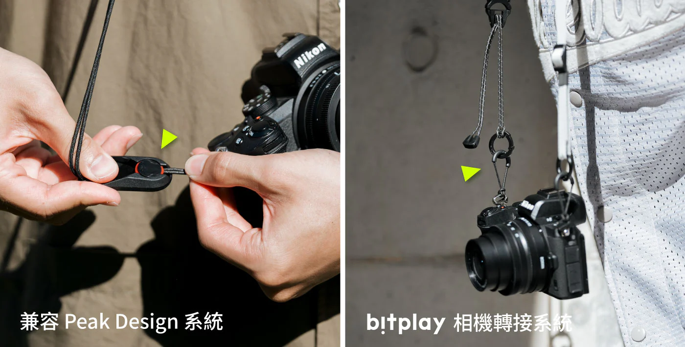 使用UHMWPE抗撕裂高強度營繩作為轉接配件,可承重30kg,可作為相機背帶使用,數位相機、傳統底片相機都能輕鬆背負