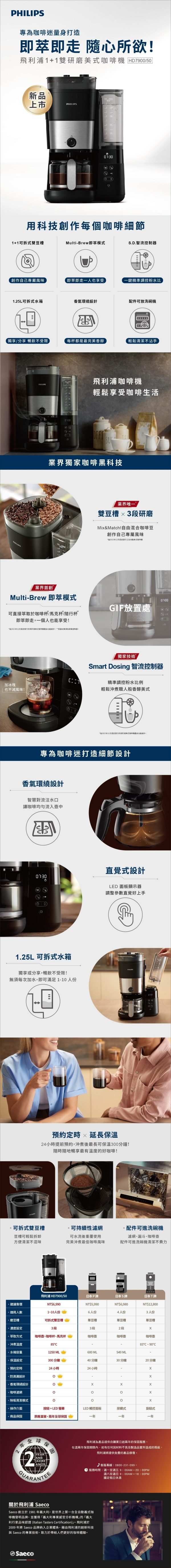 *1+1可拆式雙豆槽 創作專屬風味*Multi-Brew即萃模式 即萃即走*香氣環繞設計咖啡壺*S.D.智流控制器 一鍵精準調控粉水比*1.25L可拆式水箱 獨享/分享不受限