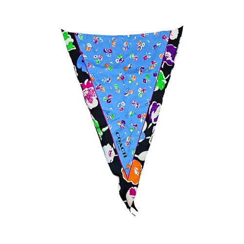COACH造型領巾,採用100%純絲質,觸感柔軟舒適,三色花朵搭配圖紋鮮明好搭,可當領巾、髮帶,亦適合在早晚偏涼的換季之際隨身攜帶保暖。