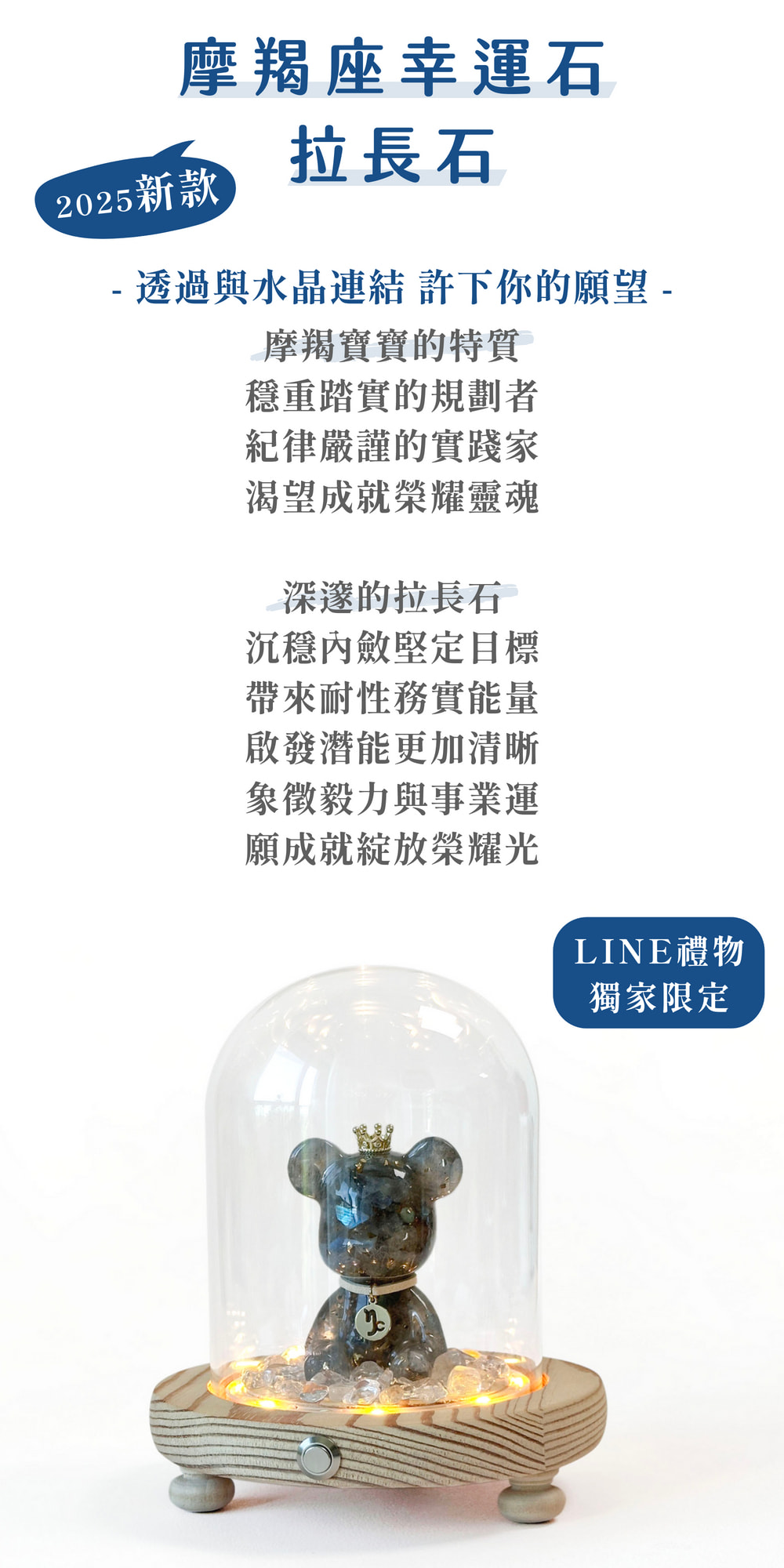 ◿ 商品內容:星座水晶熊1隻+玻璃罩燈座1個+白水晶碎石40克1包