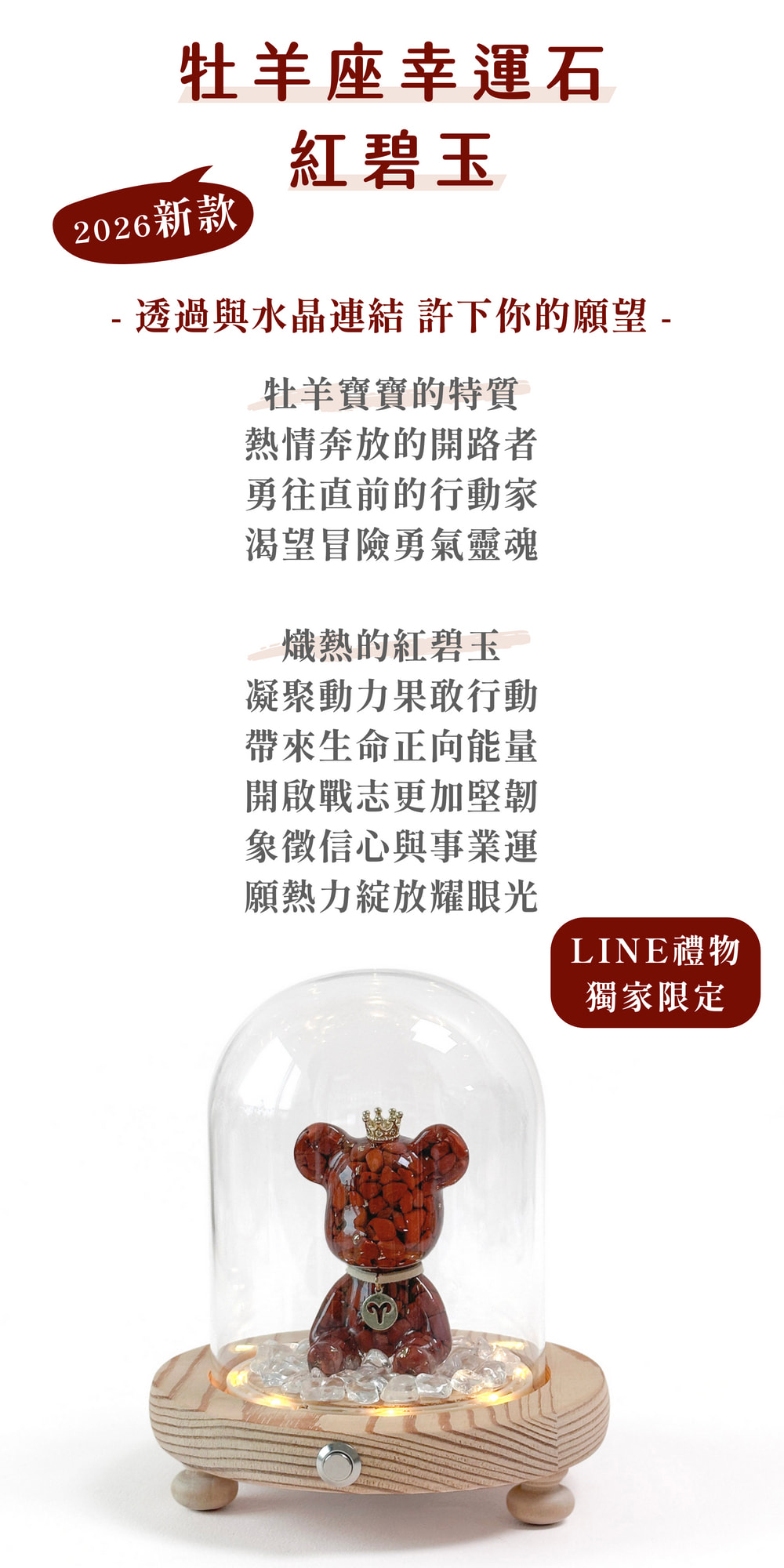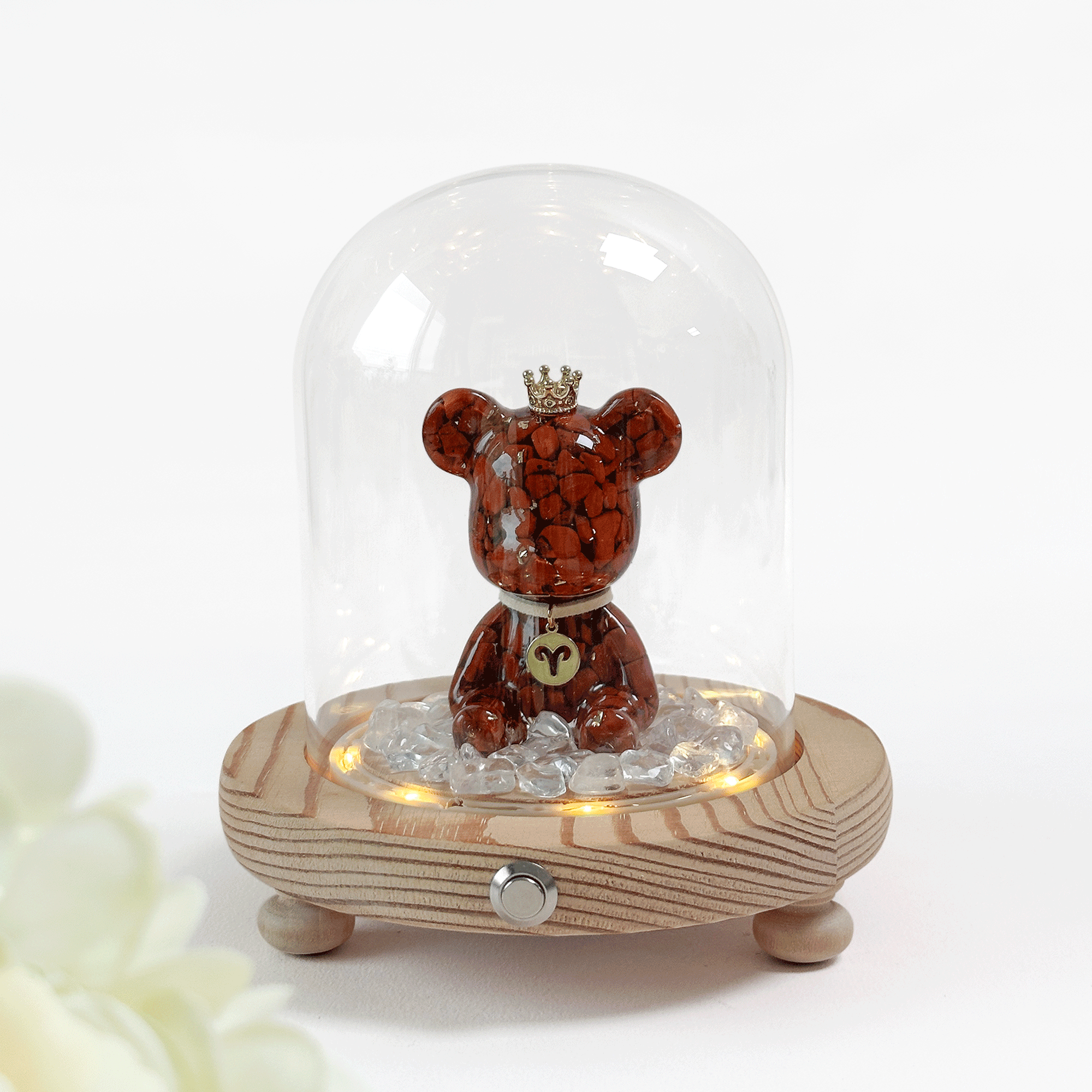 ◿ 商品內容:星座水晶熊1隻+玻璃罩燈座1個+白水晶碎石40克1包