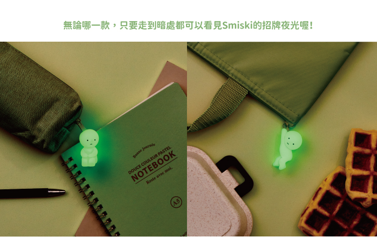 無論哪一款,只要走到暗處都可以看見Smiski的招牌夜光喔!