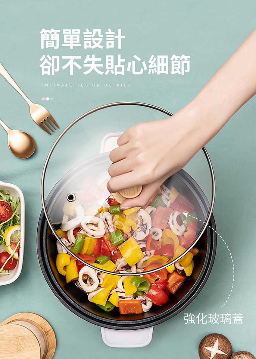 內容物:不沾鍋x1+強化玻璃蓋x1+分離式電源線x1+說明書x1