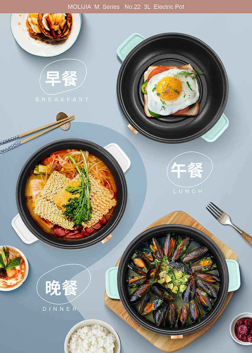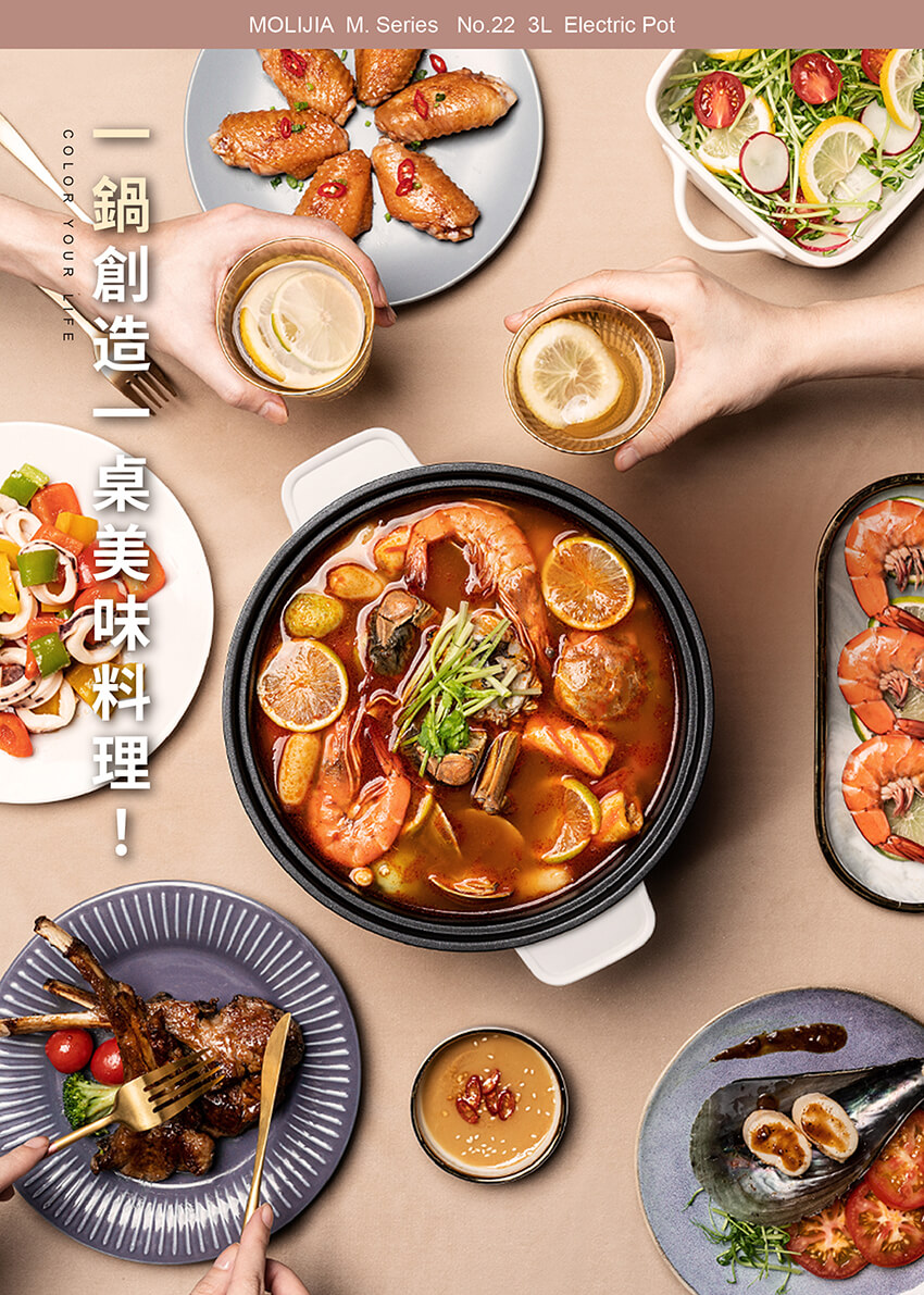 產品名稱:【魔力家】M22多功能不沾電湯鍋3L