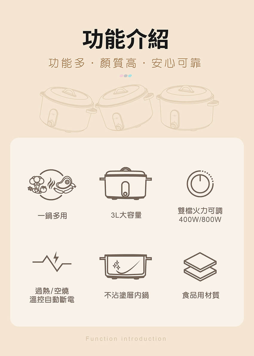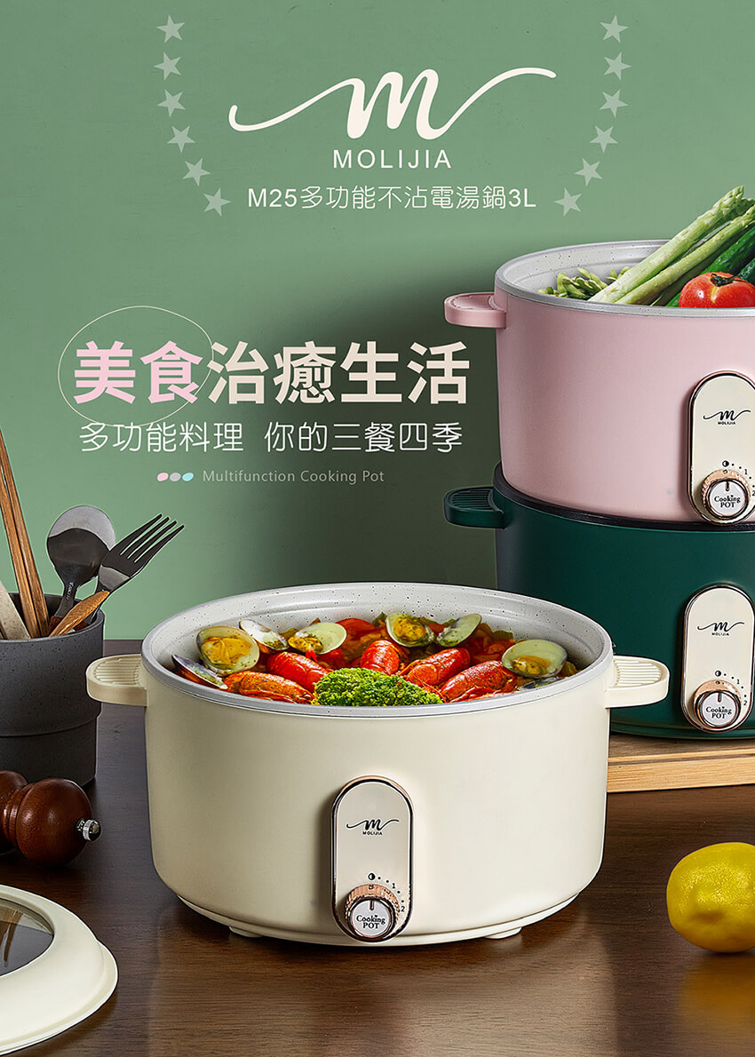 產品名稱:【魔力家】M25 多功能不沾電湯鍋3L