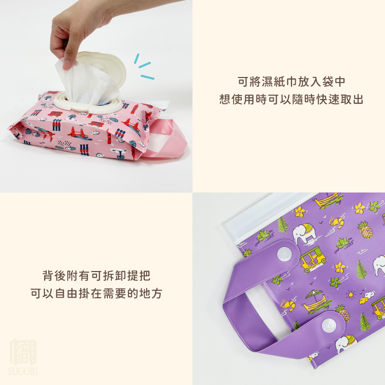 【商品內容】日本丸真 Many Many世界風情 帶蓋附提把濕紙巾收納套 (共4款)