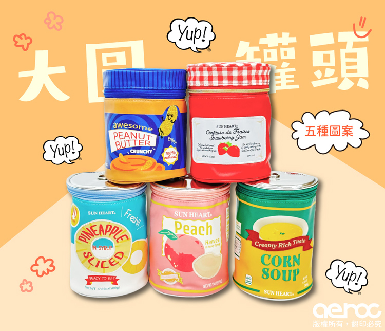 「yup! (ヤップ)」是將"yes"以一種隨意、休閒的方式來表達的俚語。日語是「嗯~」、「原來如此」、「啊~」...也就是「好」的意思。「yup! 」系列的核心理念是推出能像好朋友之間輕鬆交談的感覺並且可以在休閒生活中自在使用的商品!以"yup! "為名的系列產品可以輕鬆、隨性的應用在你的生活中品牌商品以超市隨處可見的產品和食物為設計靈感用特色鮮明、詼諧幽默的設計來豐富你的日常生活!【商品內容】日本丸真 YUP!創意收納包_大圓罐頭系列(共5款)