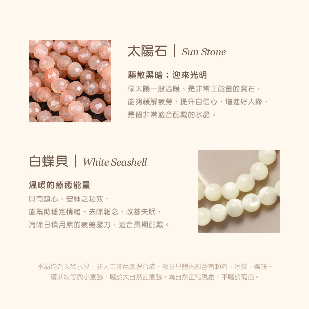 ◆材質 : 925純銀,精鍍18K金,天然太陽石;天然白蝶貝◆顏色 : 玫瑰金色◆尺寸 : 主墜約7x6.8mm◆其他 : 15cm銀鍊+1吋延長鍊◆包裝 : 奶油家族系列精裝書本盒+絨布袋+紙袋+雷射防偽貼紙+商品保固卡